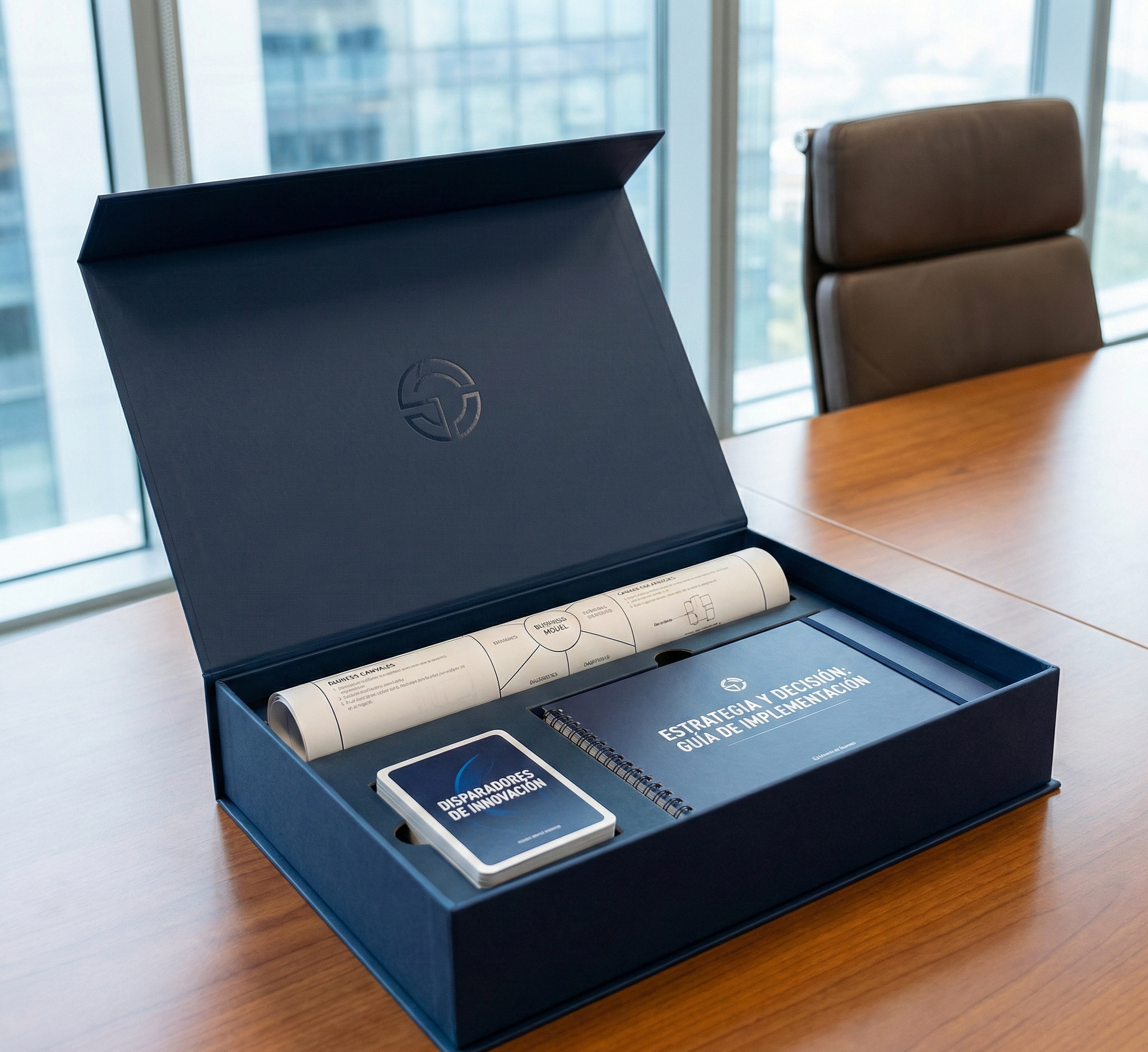 Hemos condensado años de experiencia en consultoría estratégica en una caja de herramientas físicas diseñada para desbloquear el pensamiento creativo. Este kit incluye una baraja de 60 cartas con «Disparadores de Innovación» basados en nuestros modelos propios, 5 lienzos (canvas) de gran formato reutilizables para modelado de negocio y detección de riesgos legales, y un manual físico de implementación. Es el recurso perfecto para que directivos y jefes de equipo dirijan sesiones de trabajo productivas y tangibles, utilizando las mismas estructuras mentales que nuestros consultores senior.